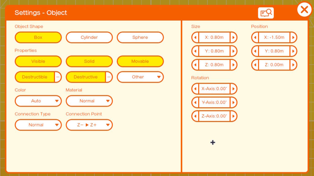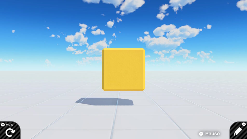 Press the Plus button to try this out. Try panning the camera to the left and right and up and down with the left JoyCon stick. The yellow box should stay in front of the camera.